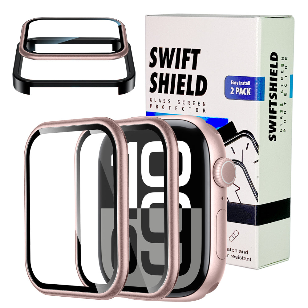 Apple Watch Series 10 (46mm) Glass Screen Protector Alignment Kit by SwiftShield (2 Pack - Rose Gold)