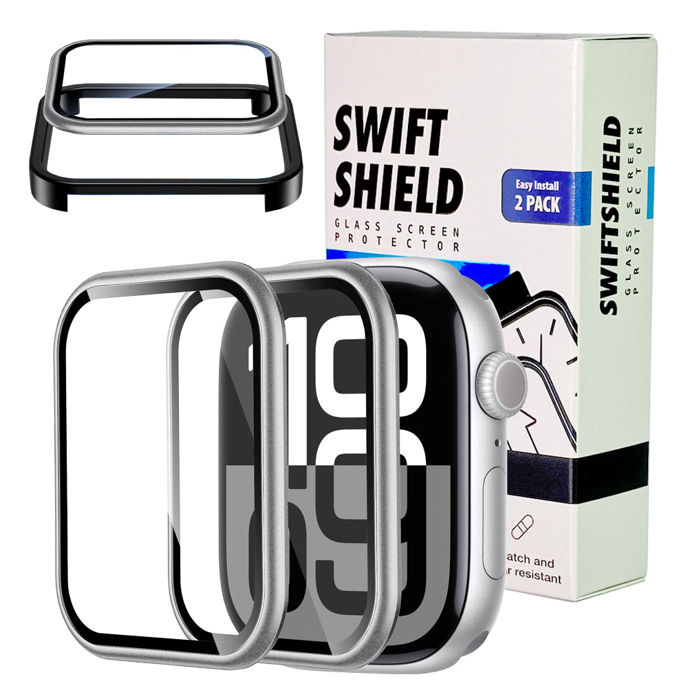 Apple Watch Series 10 (46mm) Glass Screen Protector Alignment Kit by SwiftShield (2 Pack - Silver)
