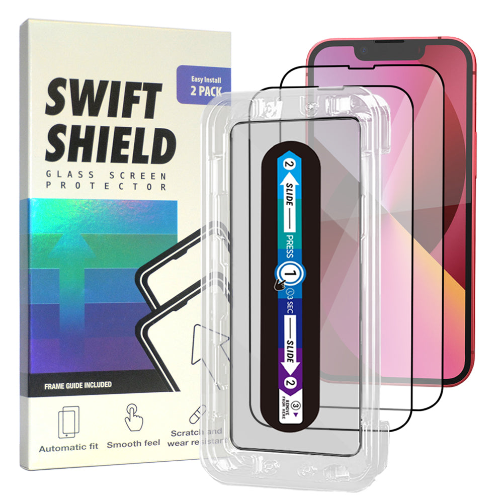 SwiftShield Clear Premium Tempered Glass Screen Protector Alignment Kit for iPhone 13 Mini [2-Pack] Protect your precious device with a layer of tempered glass (goodbye to scratches and cracks!). The SwiftShield Clear Premium Tempered Glass Screen Protector Alignment Kit ensures precise installation for your iPhone 13 Mini, so you can have peace of mind and a crystal-clear view at all times.