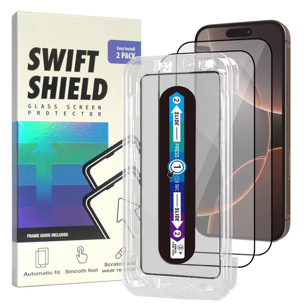 iPhone 16 Pro Tempered Glass Screen Protector [2-Pack] with Easy Alignment Frame – Clear, Premium by SwiftShield