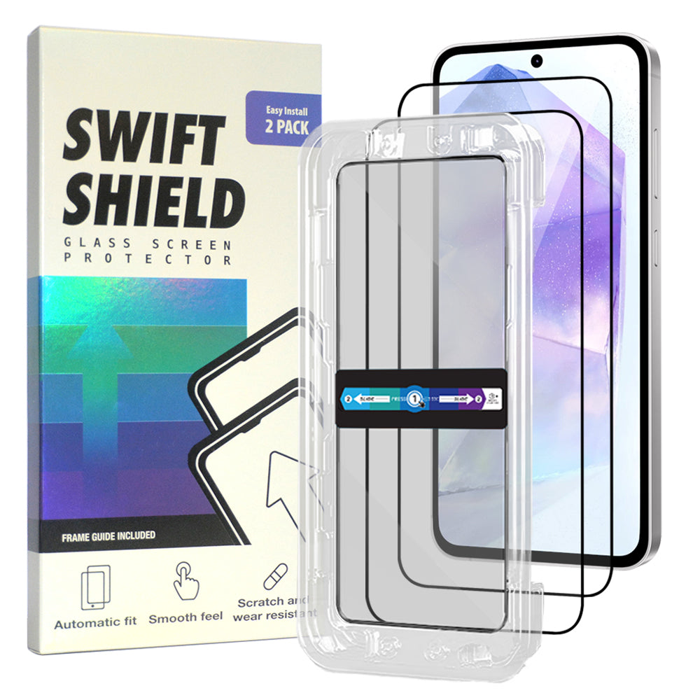 Samsung Galaxy A55 5G Tempered Glass Screen Protector [2-Pack] with Easy Alignment Frame – Clear, Premium by SwiftShield
