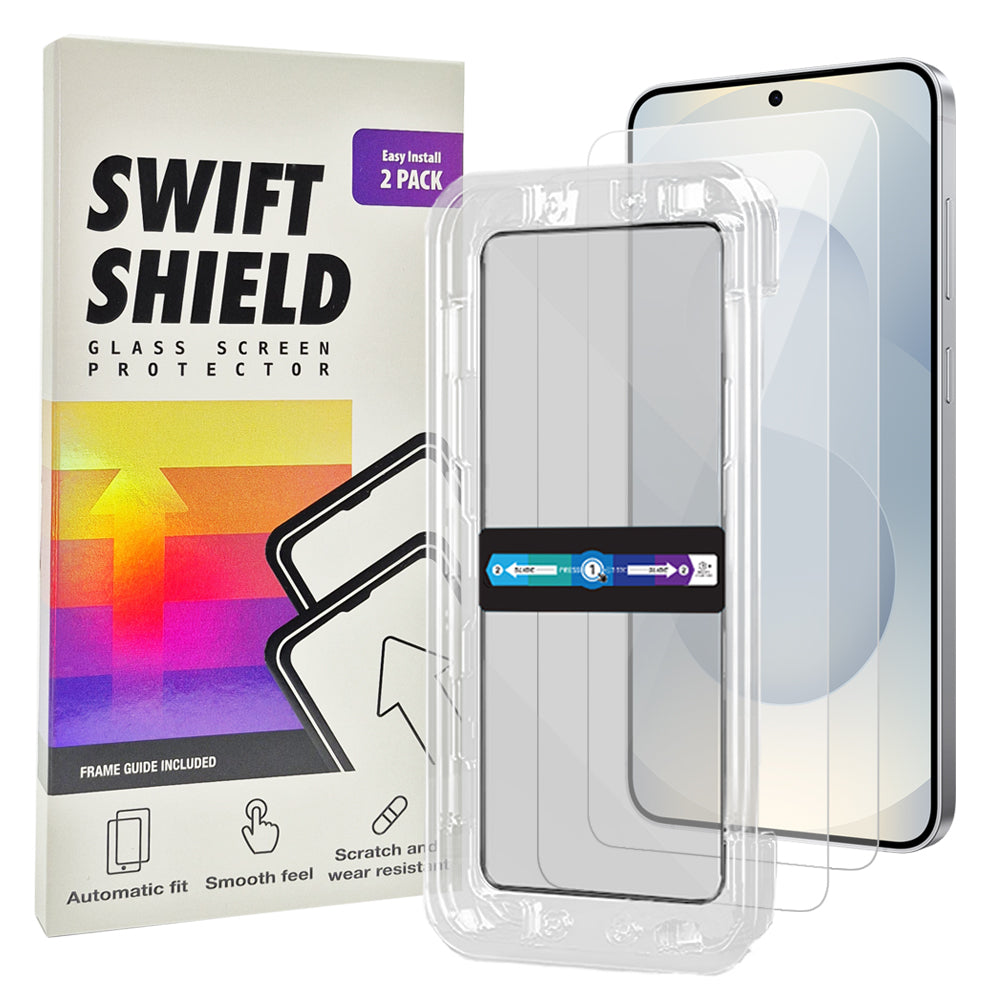 SwiftShield Clear Premium Tempered Glass Screen Protector Alignment Kit for Samsung Galaxy S25 Plus [2-Pack] Protect your precious device with a layer of tempered glass (goodbye to scratches and cracks!). The SwiftShield Clear Premium Tempered Glass Screen Protector Alignment Kit ensures precise installation for your Samsung Galaxy S25 Plus, so you can have peace of mind and a crystal-clear view at all times.