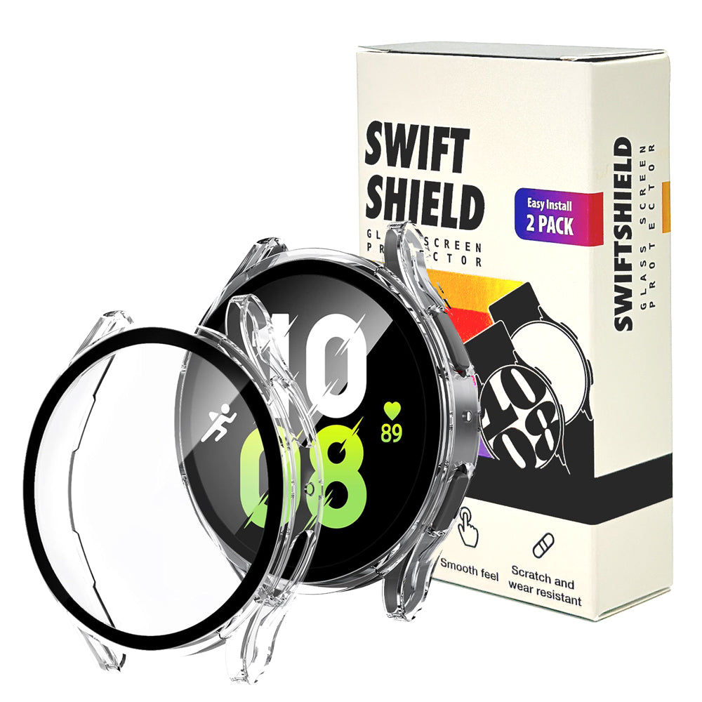 Experience unbeatable protection with SwiftShield's Samsung Watch Screen Protector Glass Case. The durable PC case is paired with a slim, high-definition clear tempered glass screen protector to ensure your watch is protected from all angles. Get ultimate peace of mind with this must-have product.