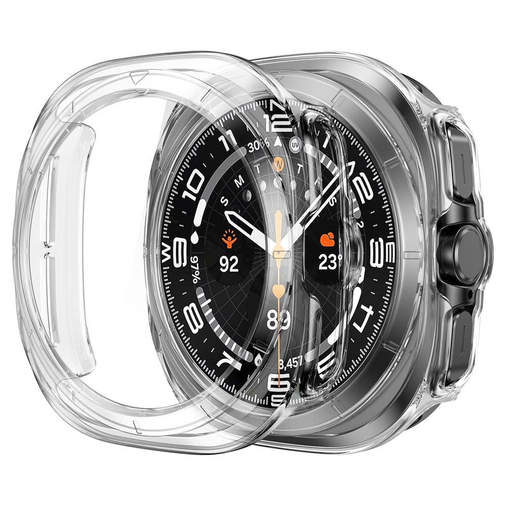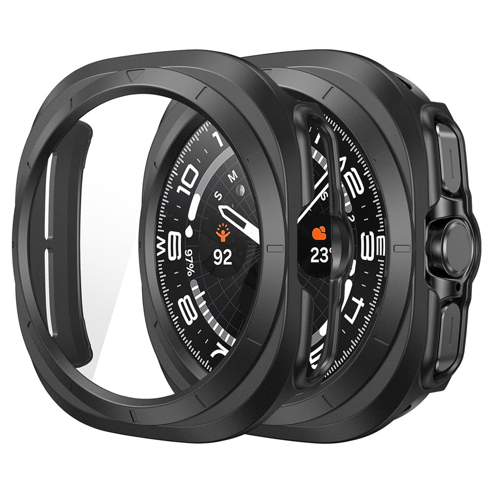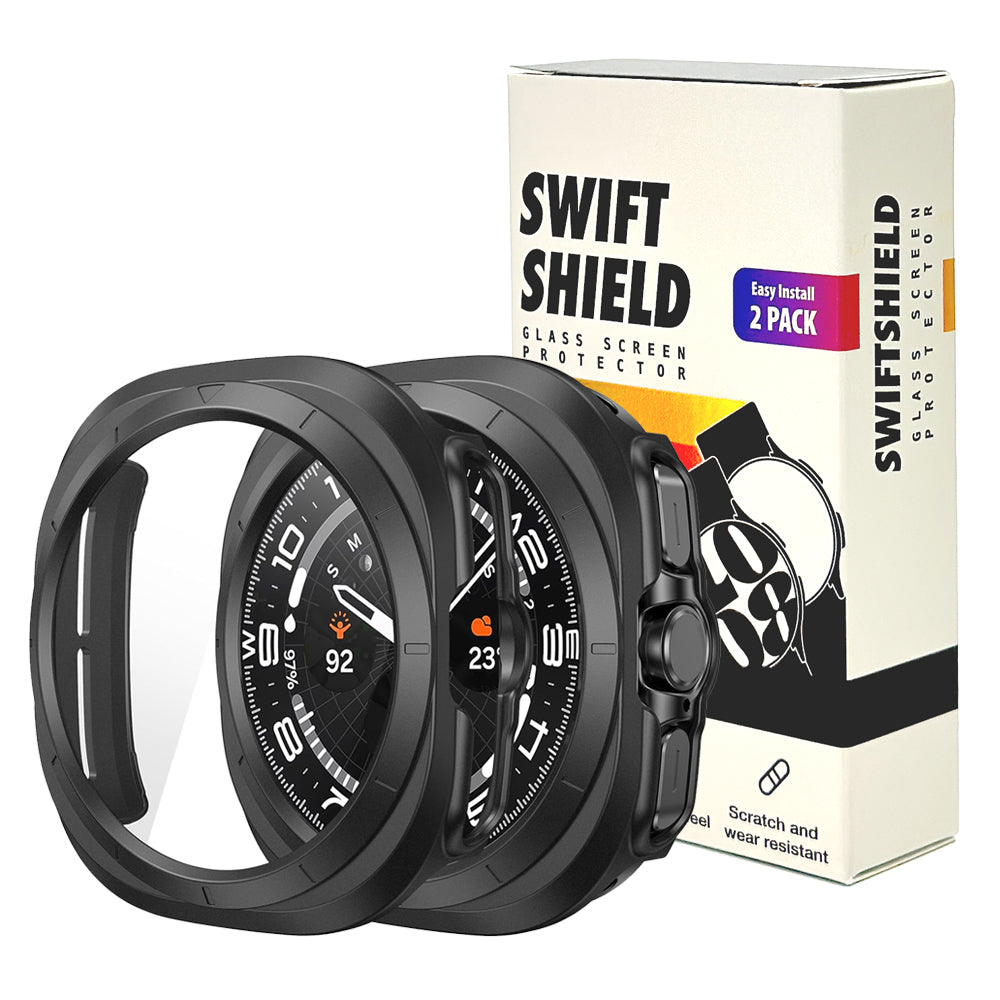 Samsung Galaxy Watch Ultra 47mm Case with Glass Screen Protector by SwiftShield (2 Pack - Black + Clear)