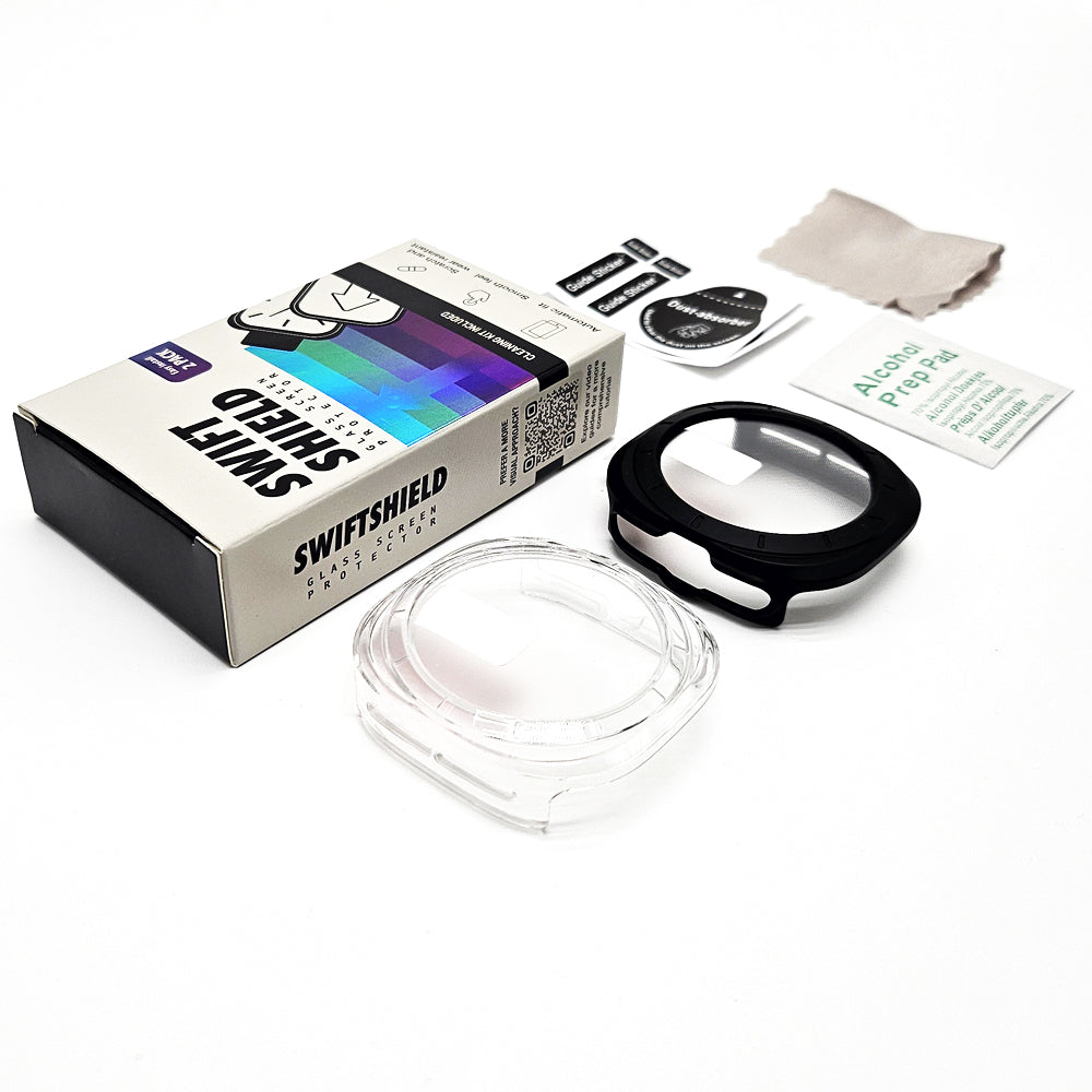 Experience unbeatable protection with SwiftShield's Samsung Watch Screen Protector Glass Case. The durable PC case is paired with a slim, high-definition clear tempered glass screen protector to ensure your watch is protected from all angles. Get ultimate peace of mind with this must-have product.