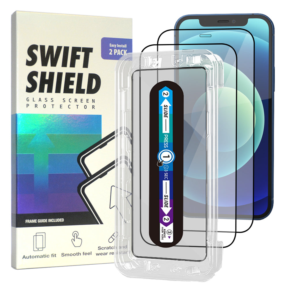 iPhone 12 Tempered Glass Screen Protector [2-Pack] with Easy Alignment Frame – Clear, Premium by SwiftShield