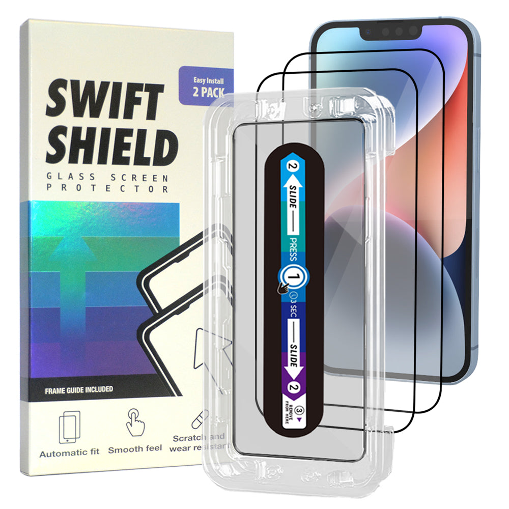 iPhone 14 Tempered Glass Screen Protector [2-Pack] with Easy Alignment Frame – Clear, Premium by SwiftShield