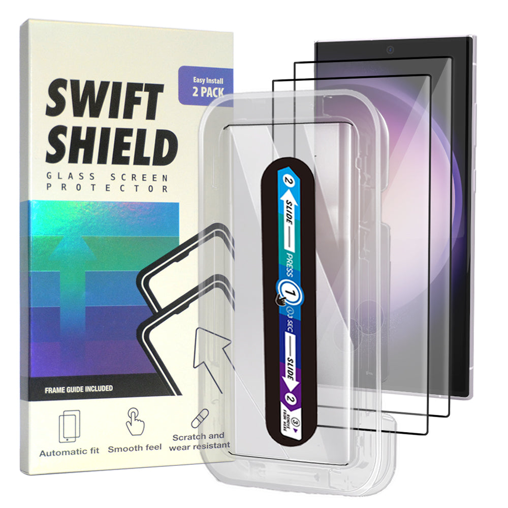 SwiftShield Clear Premium Tempered Glass Screen Protector Alignment Kit for Samsung Galaxy S23 Ultra [2-Pack] Protect your precious device with a layer of tempered glass (goodbye to scratches and cracks!). The SwiftShield Clear Premium Tempered Glass Screen Protector Alignment Kit ensures precise installation for your Samsung Galaxy S23 Ultra, so you can have peace of mind and a crystal-clear view at all times.