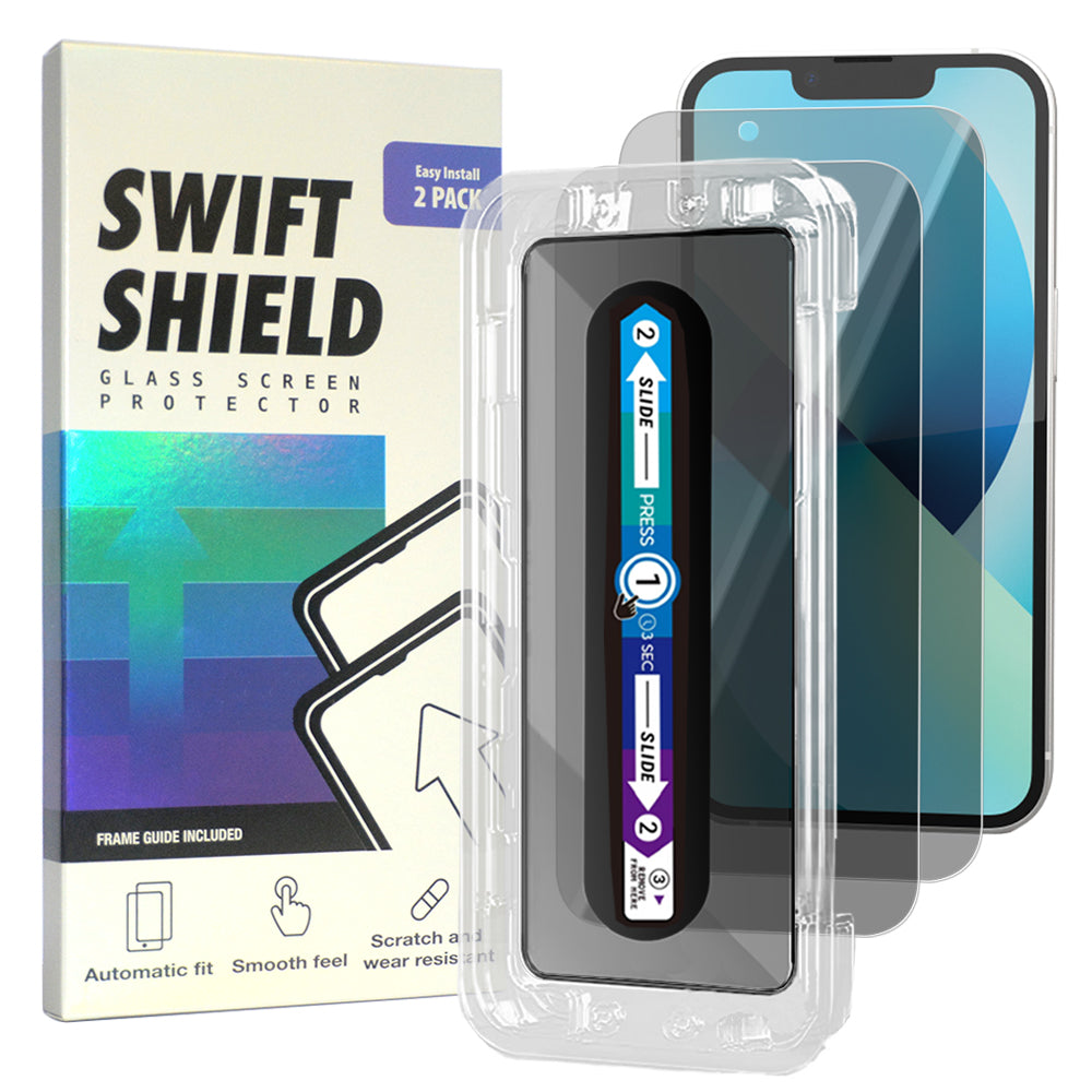 iPhone 13 Tempered Glass Screen Protector [2-Pack] with Easy Alignment Frame – Privacy, Premium by SwiftShield