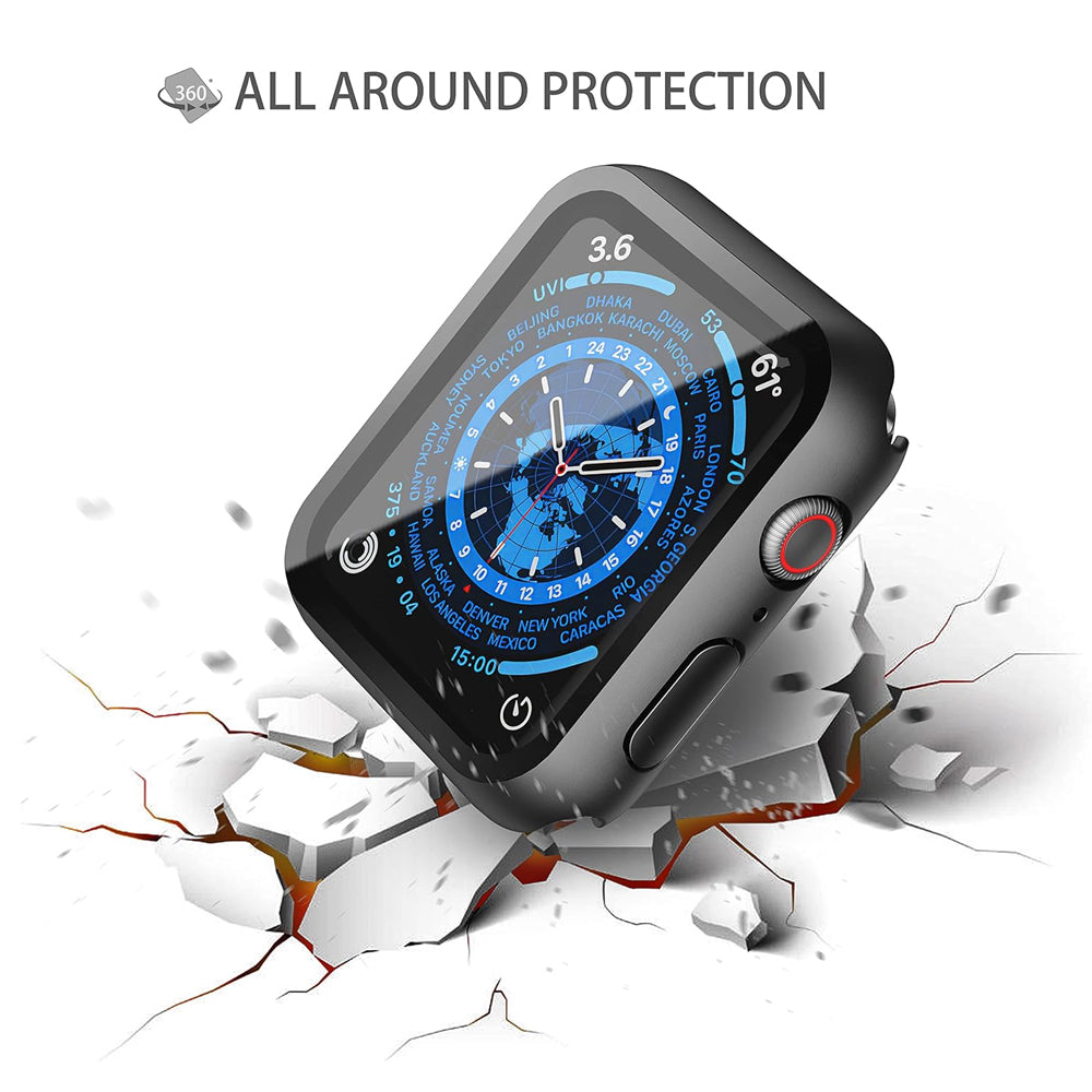 Apple Watch 41mm Case with Glass Screen Protector by SwiftShield (2 Pack - Black)