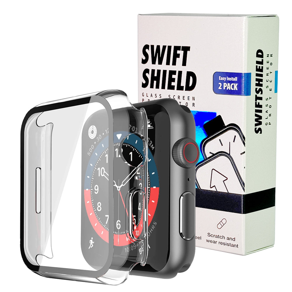 Experience unbeatable protection with SwiftShield's Apple Watch Screen Protector Glass Case. The durable PC case is paired with a slim, high-definition clear tempered glass screen protector to ensure your watch is protected from all angles. Get ultimate peace of mind with this must-have product.